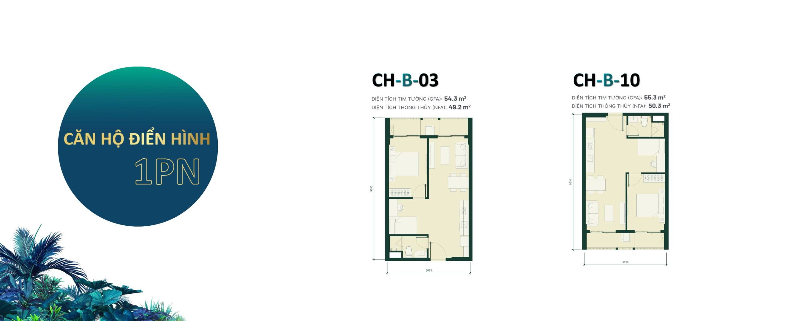| Căn hộ 1PN + 1WC | 54m² | |